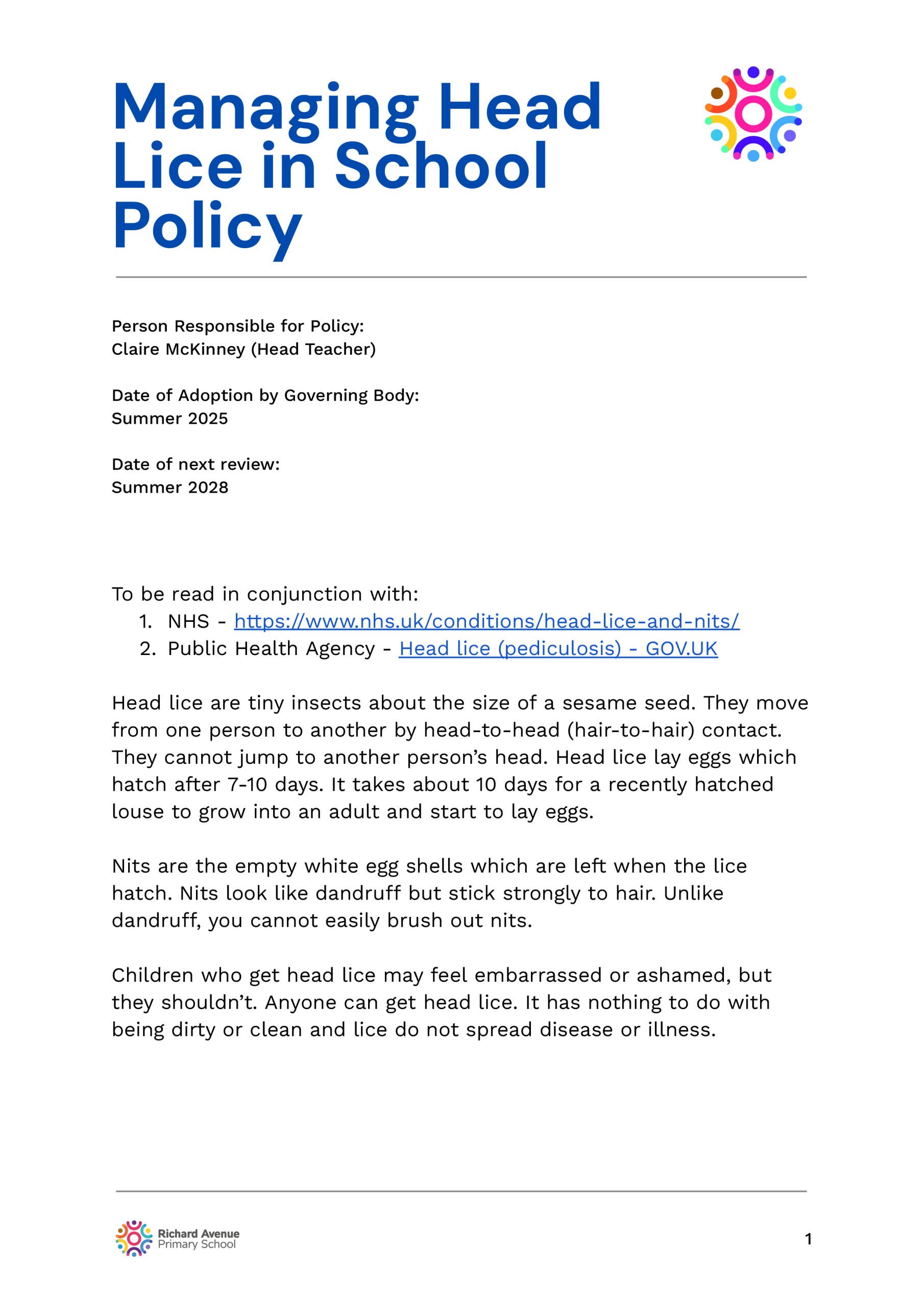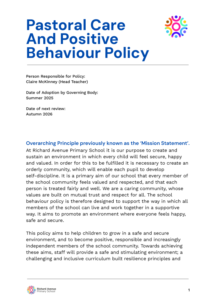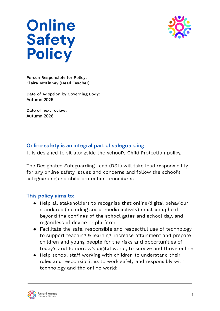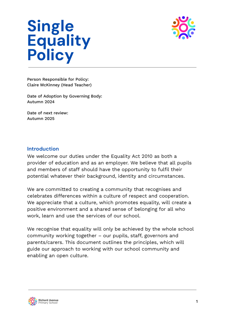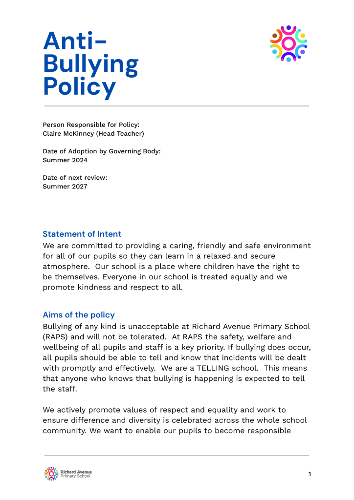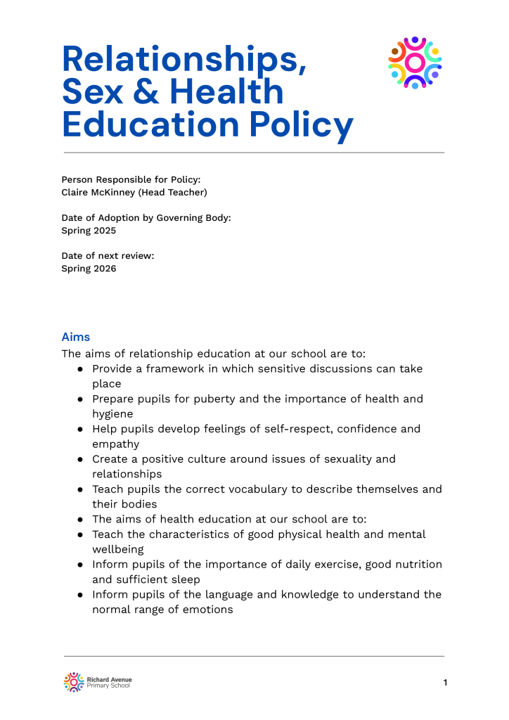 The following are school policies and other documents governing the running of the school. You can download or read these here online, print copies or request paper copies from the school provided free of charge: